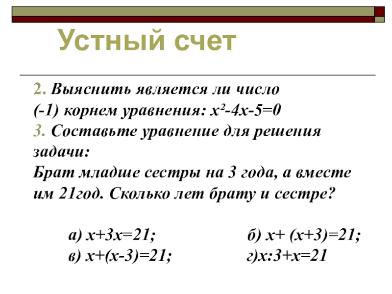 Устный счет