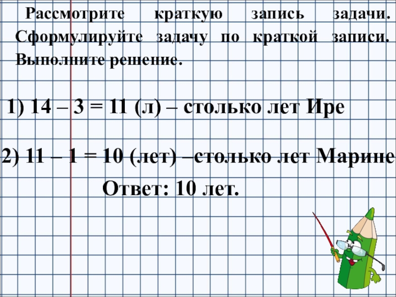 2) 11 – 1 = 10 (лет) –столько лет Марине.