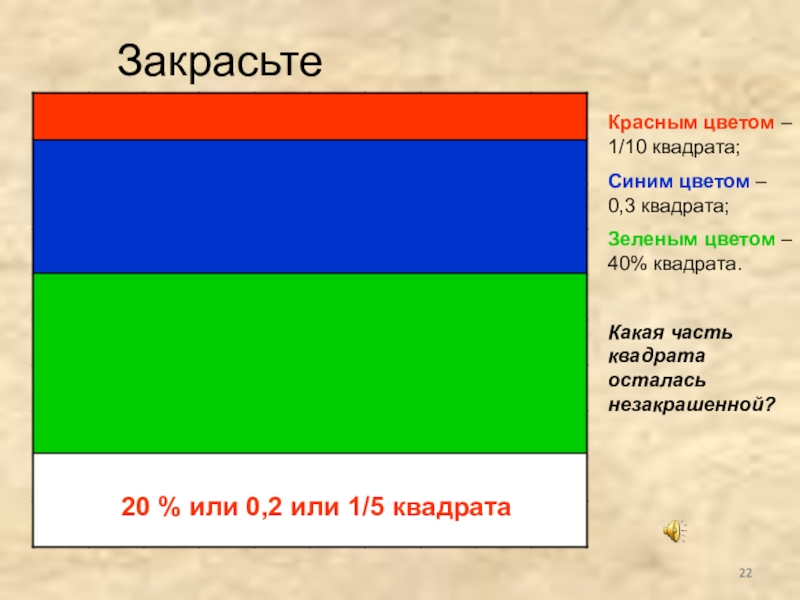 20 % или 0,2 или 1/5 квадрата