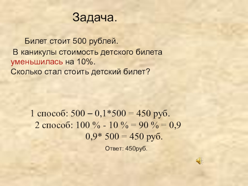 1 способ: 500 – 0,1*500 = 450 руб.