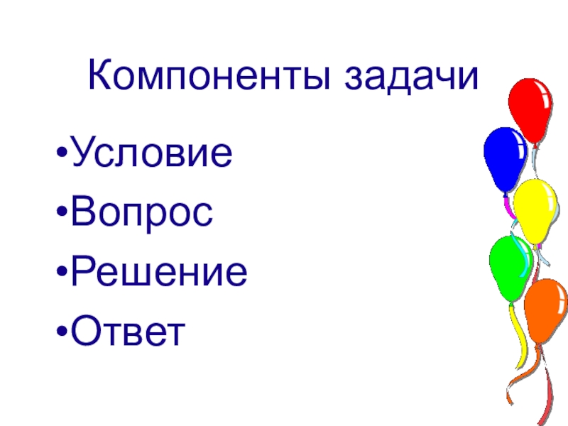 Компоненты задачиУсловиеВопросРешениеОтвет