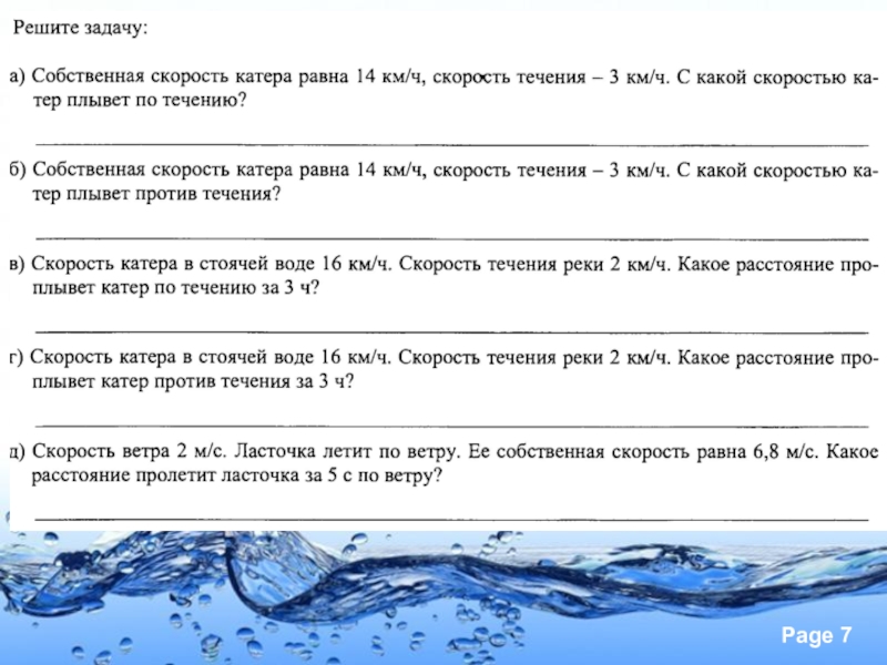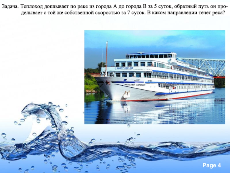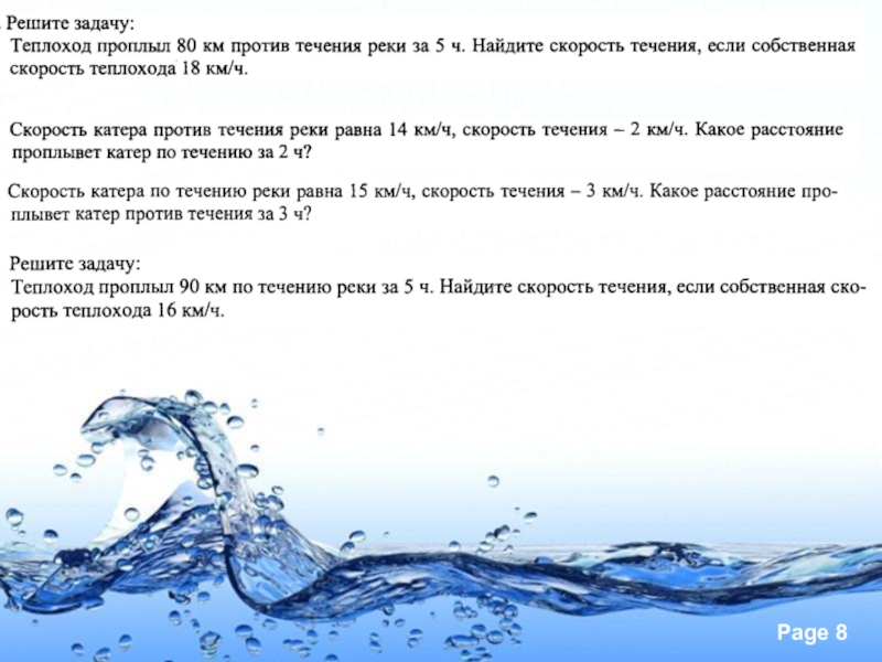 Презентация, доклад по математике на тему Решение задач на скорость течения реки
