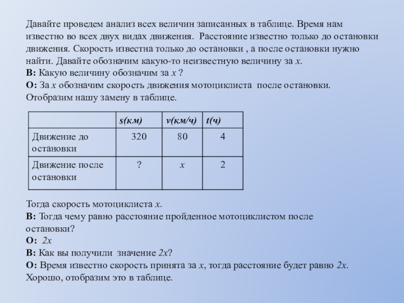 О: Время известно скорость принята за х, тогда расстояние будет равно 2х.