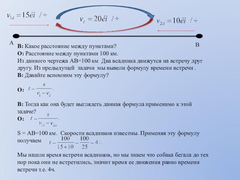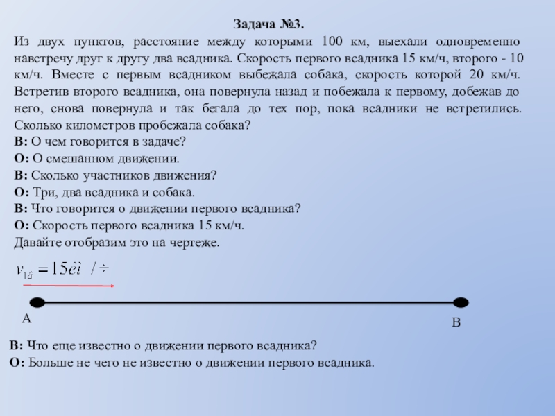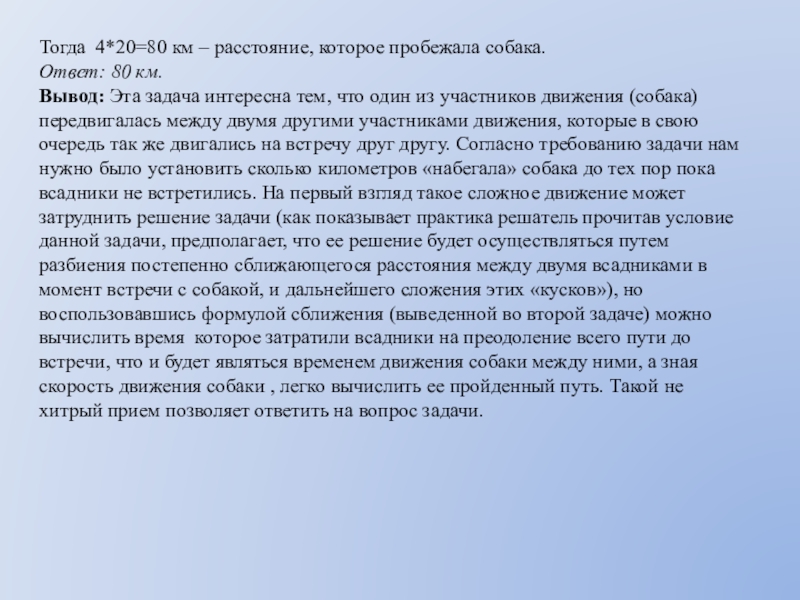 О: То что собака двигалась до тех пор пока не встретились всадники.