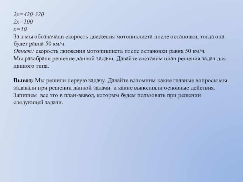 В: Тогда чему равно расстояние пройденное мотоциклистом после остановки?