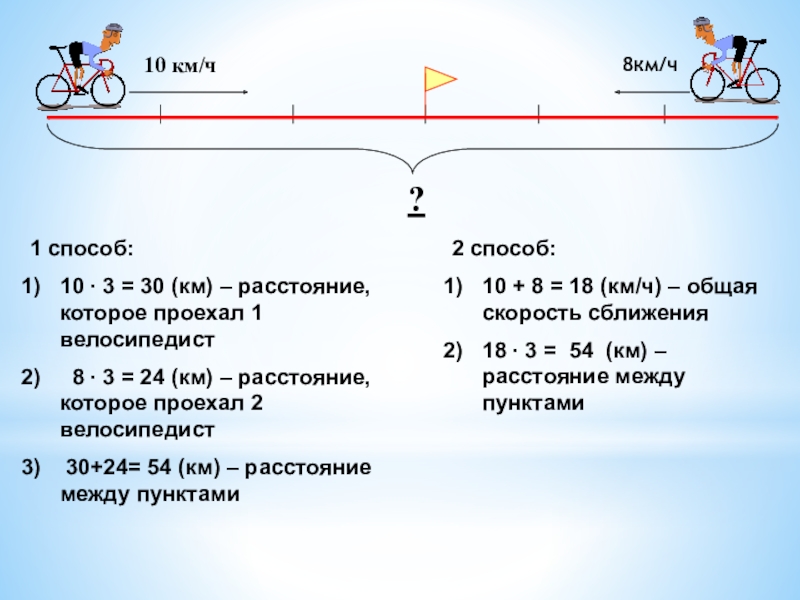 18 ∙ 3 = 54 (км) – расстояние между пунктами