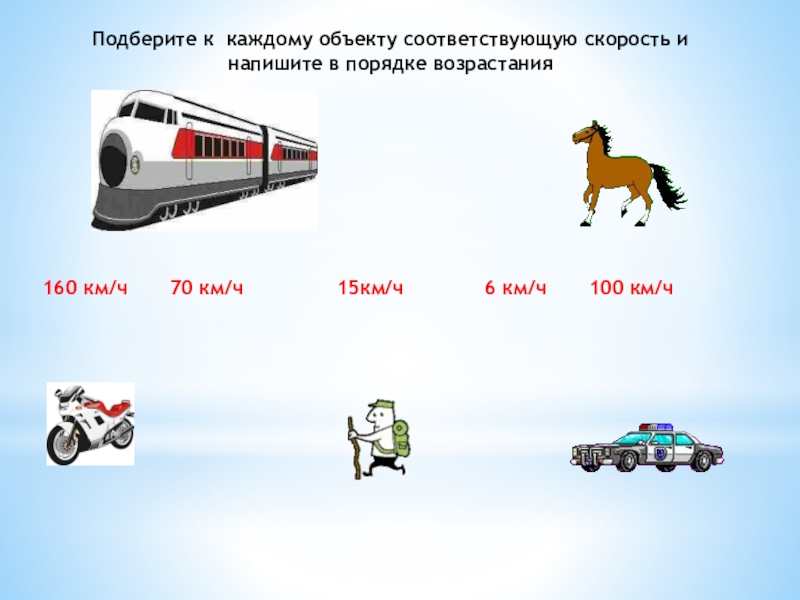Подберите к каждому объекту соответствующую скорость и напишите в порядке возрастания