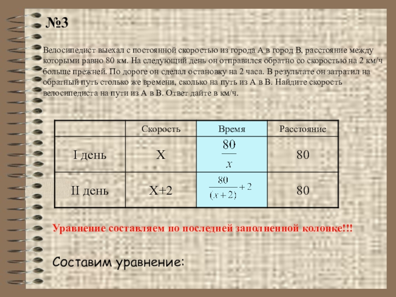 Уравнение составляем по последней заполненной колонке!!!