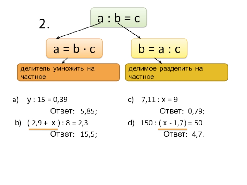 c) 7,11 : х = 9