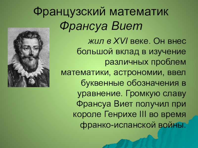Большой вклад в учение об уравнениях