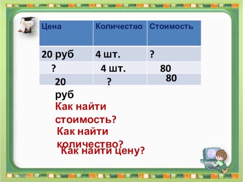 2) 20 * 5 = 100 ( руб)- уплатила за яблоки.