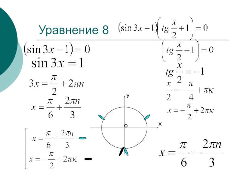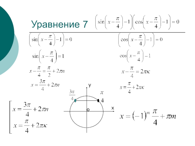 - уравнение 7 позволяет отработать навыки объединения двух серий корней и записывать их в виде одной серии;