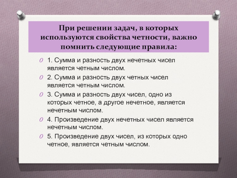 3. Сумма и разность двух чисел, одно из которых четное, а другое нечетное, является нечетным числом.