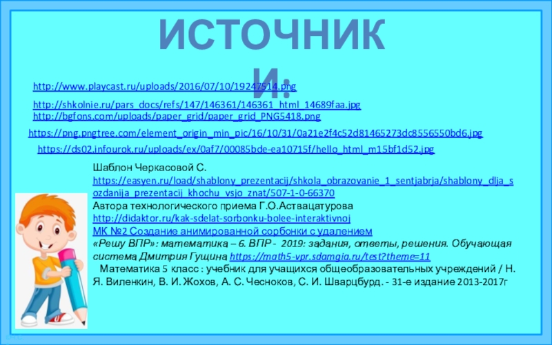 Это сайт презентаций, где можно хранить и обмениваться своими презентациями, докладами, проектами, шаблонами в формате PowerPoint с другими пользователями. Мы помогаем школьникам, студентам, учителям, преподавателям хранить и обмениваться учебными материалами.