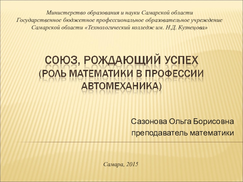 Самарской области «Технологический колледж им. Н.Д. Кузнецова»