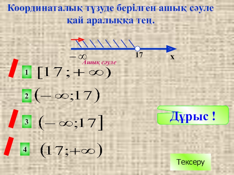 Координаталық түзуде берілген сәуле қай аралыққа тең.