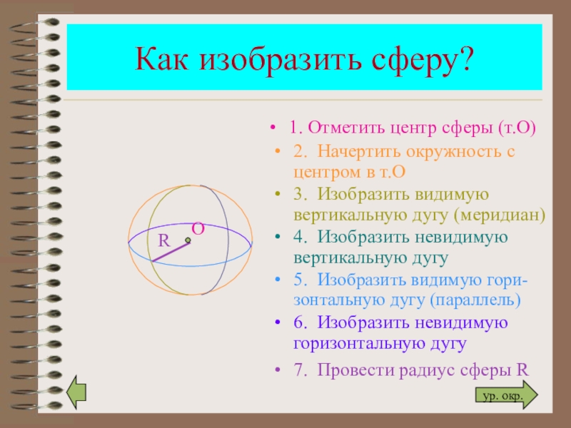 7. Провести радиус сферы R