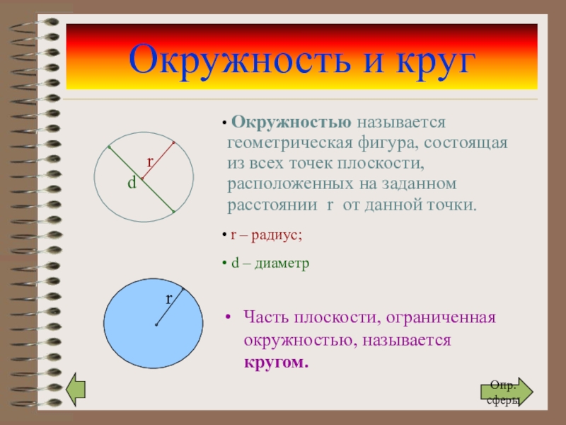 D – диаметр сферы – отрезок, соединяющий любые 2 точки сферы и проходящий через центр.