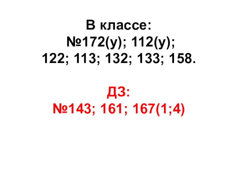 В классе: №172(у); 112(у); 122; 113; 132; 133; 158.ДЗ: №143; 161; 167(1;4)