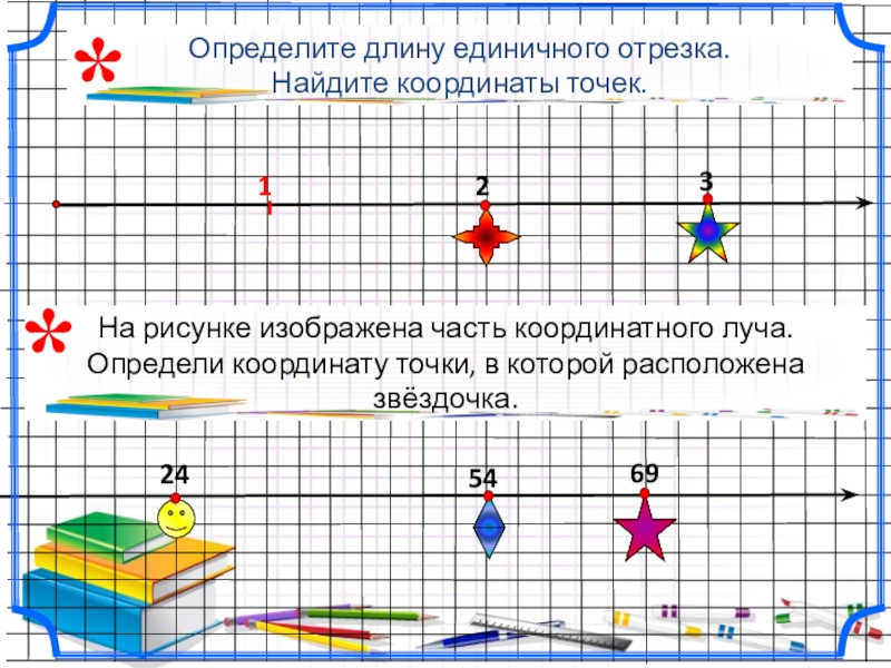 Над началом луча напишем число 0, а над точкой Е – число 1. Отрезок ОЕ называют единичным отрезком.