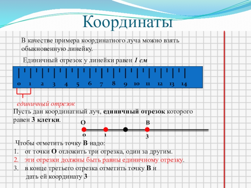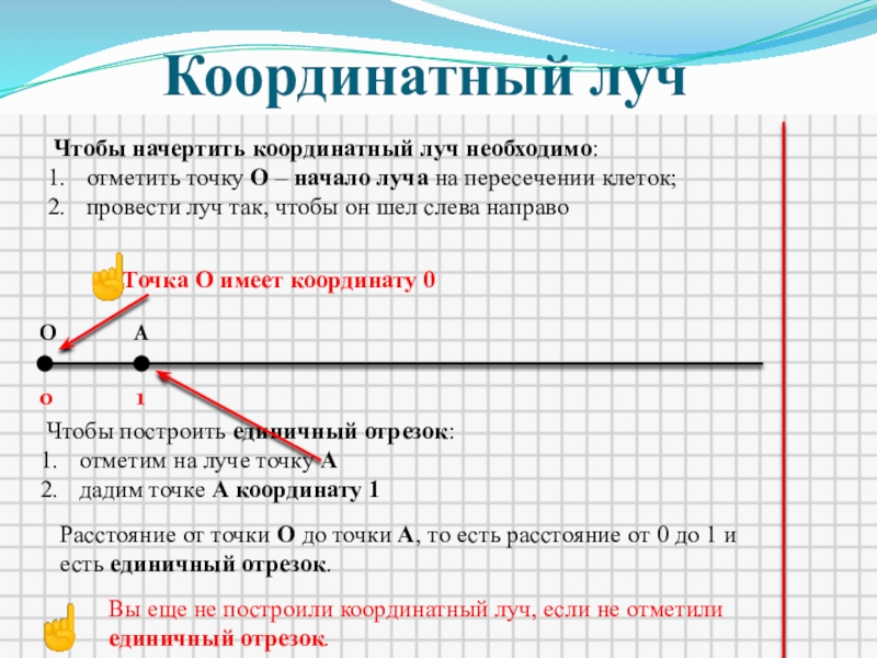 Вы еще не построили координатный луч, если не отметили единичный отрезок.