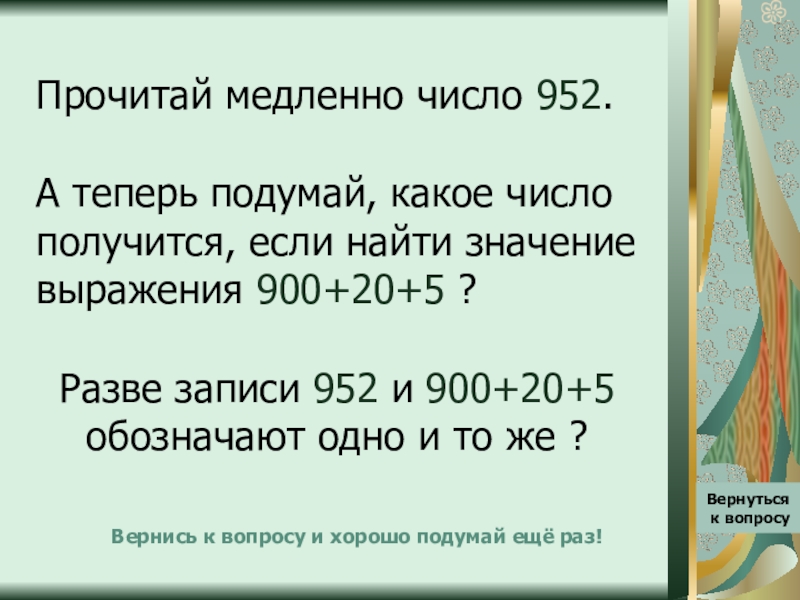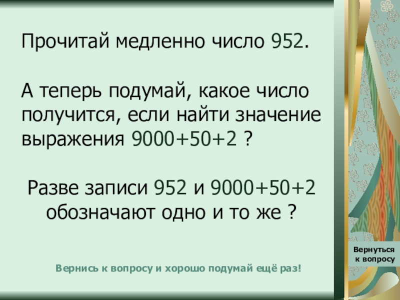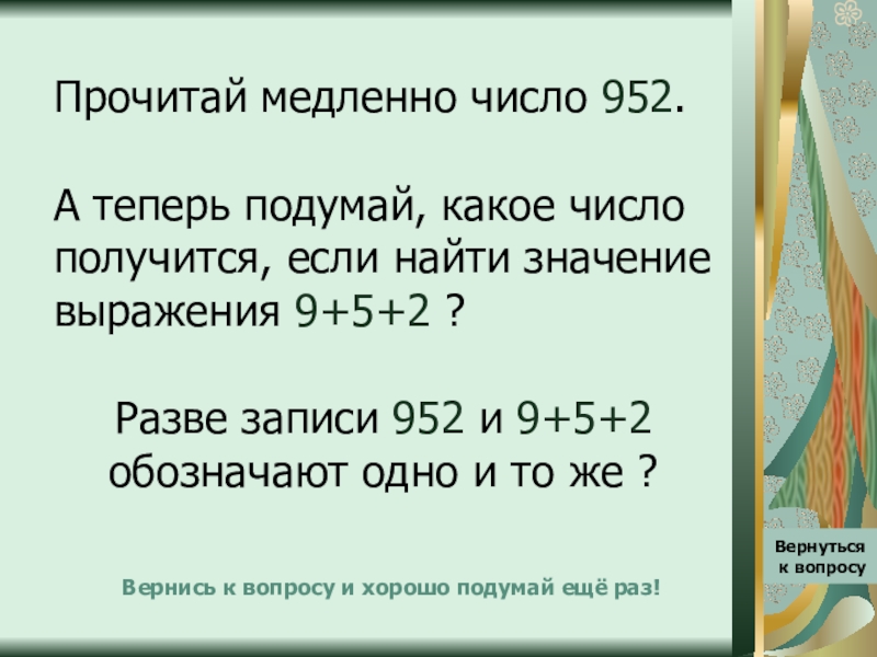 Вернись к вопросу и хорошо подумай ещё раз!