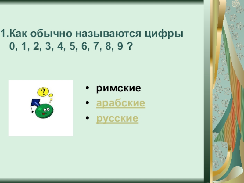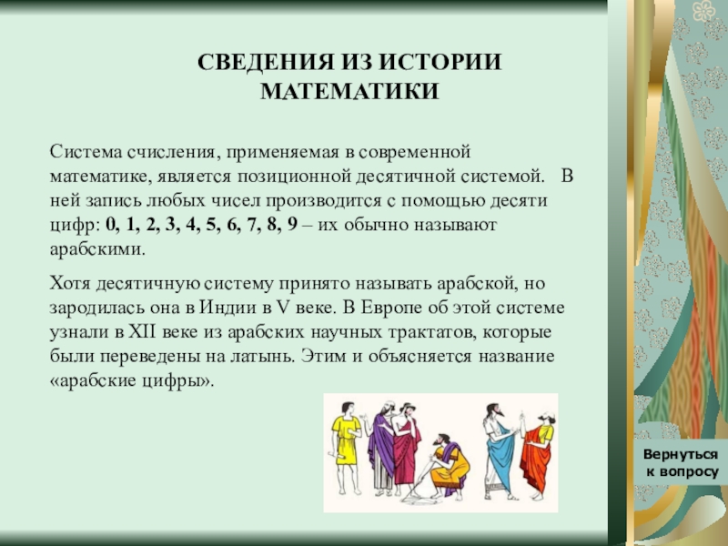 А цифры 0, 1, 2, 3, 4, 5, 6, 7, 8, 9, которые применяются в современной математике, называются иначе. Вспомни, что об этом говорил учитель на уроке.