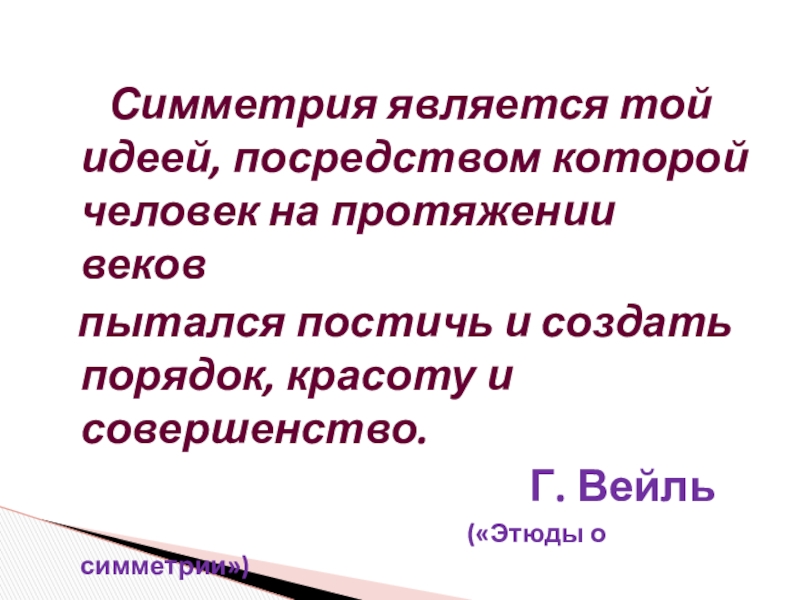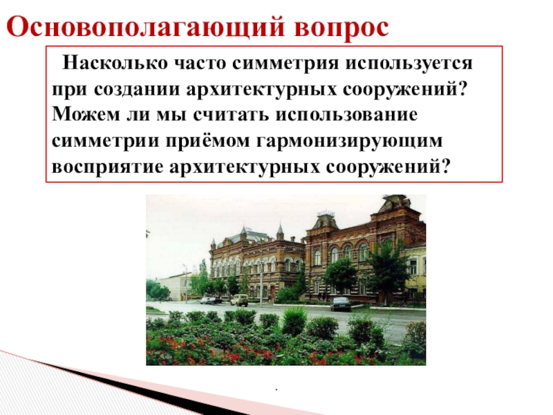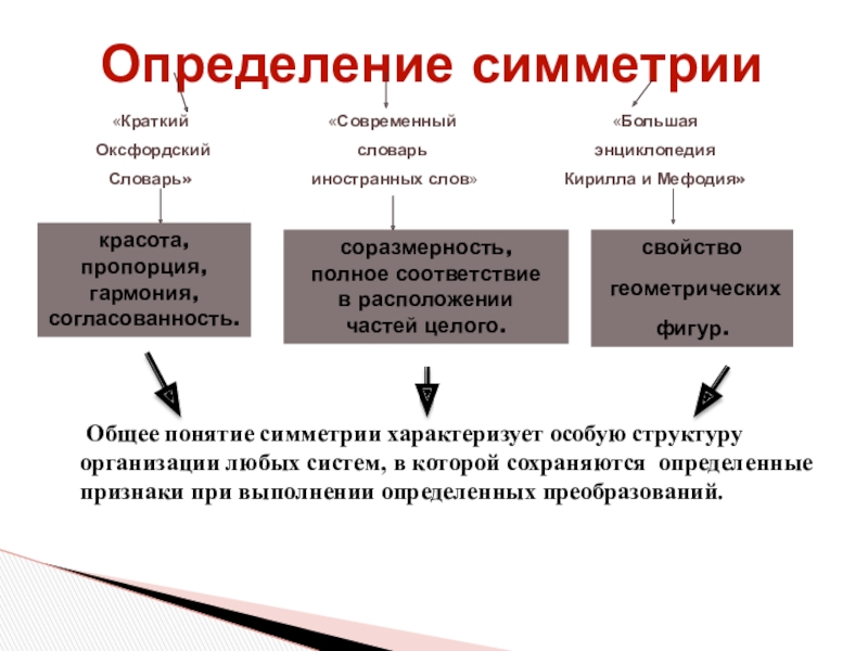 Общее понятие симметрии характеризует особую структуру организации любых систем, в которой сохраняются определенные признаки при выполнении определенных преобразований. архитектуре, основанный на фундаментальном свойстве действительности.