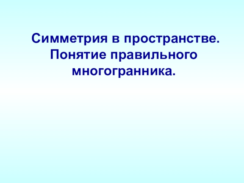 Слайд 1 Симметрия в пространстве. Понятие правильного многогранника.
