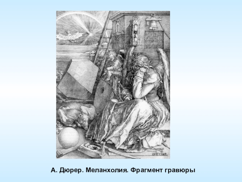 Слайд 12А. Дюрер. Меланхолия. Фрагмент гравюры
