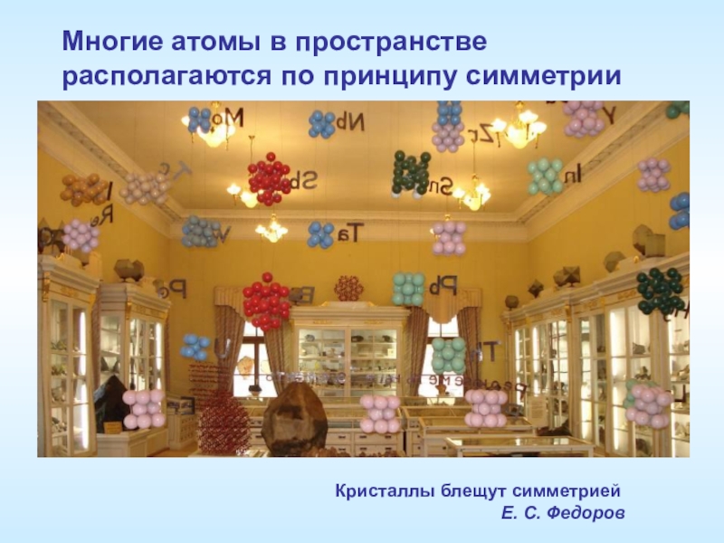 Многие атомы в пространстве располагаются по принципу симметрииКристаллы блещут симметрией