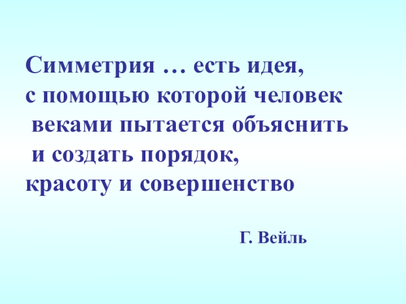 Симметрия … есть идея,с помощью которой человек веками пытается объяснить и создать порядок, красоту и совершенство Г.