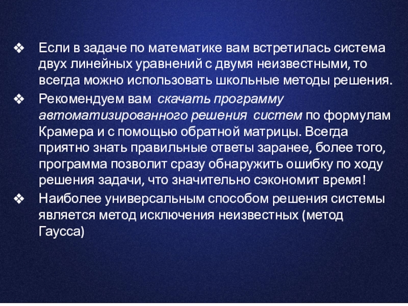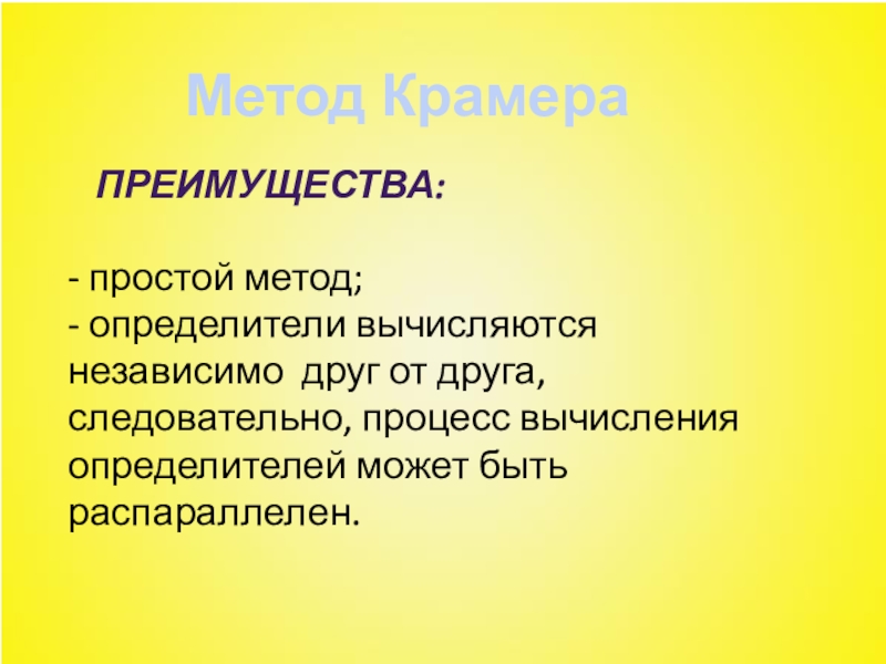 -если система содержит больше трех уравнений, то нахождение обратной матрицы требует значительных вычислительных усилий