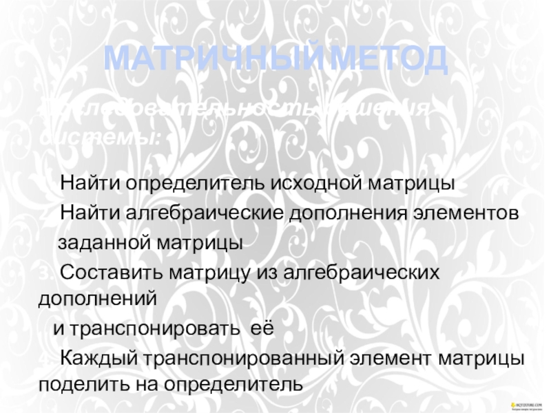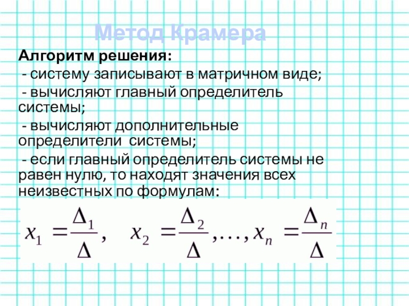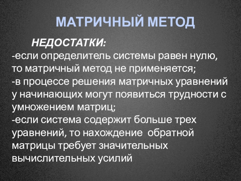 -если определитель системы равен нулю, то матричный метод не применяется;