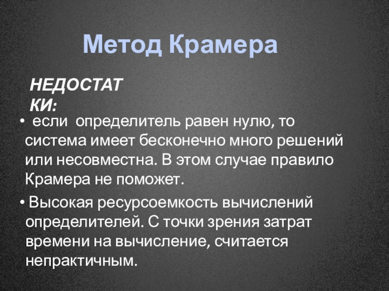 если определитель равен нулю, то система имеет бесконечно много решений или несовместна. В этом случае правило Крамера не поможет.
