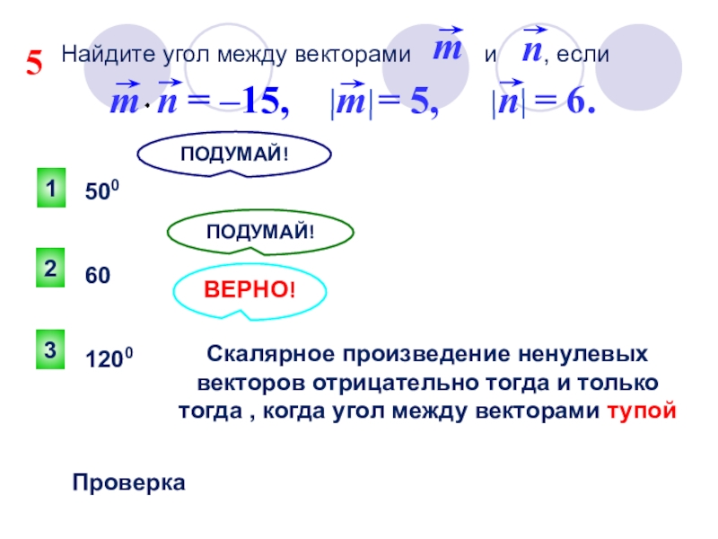 Скалярное произведение ненулевых векторов отрицательно тогда и только тогда , когда угол между векторами тупой