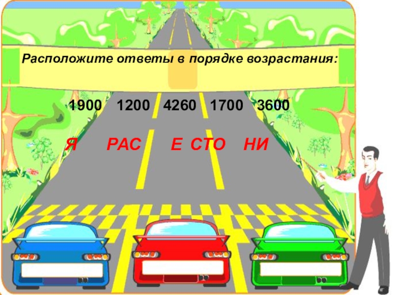 Расположите ответы в порядке возрастания:1900	 1200  4260  1700  3600  Я   РАС