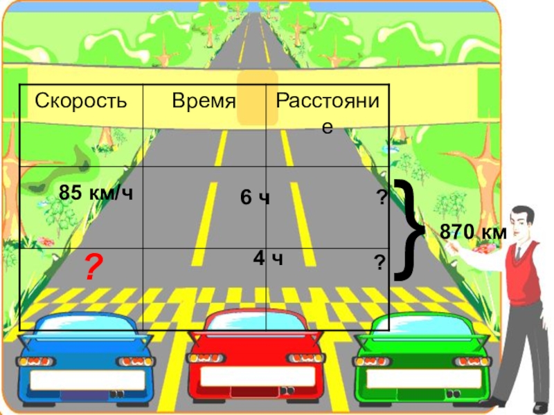 85 км/ч6 ч?}870 км4 ч??