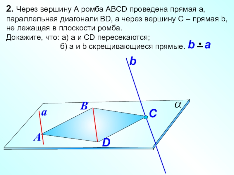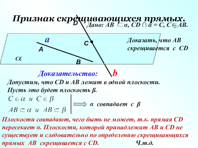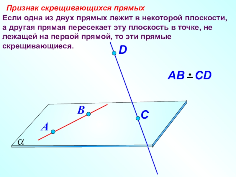 пересекает α. Плоскости, которой принадлежат АВ и СD не