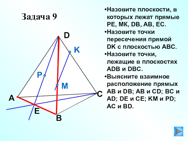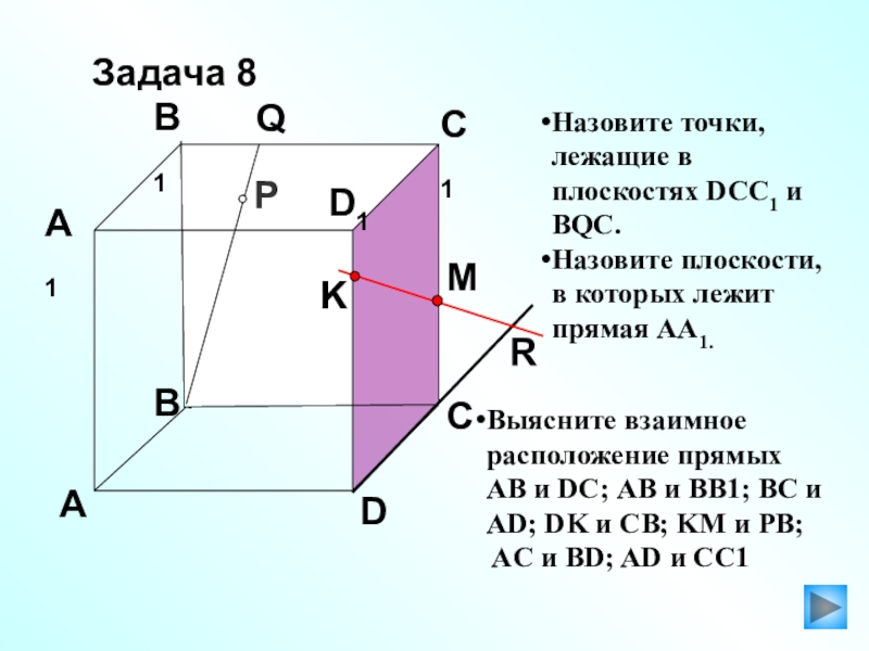 AB и DС; AB и BB1; BC и AD; DK и CB; KM и PB;