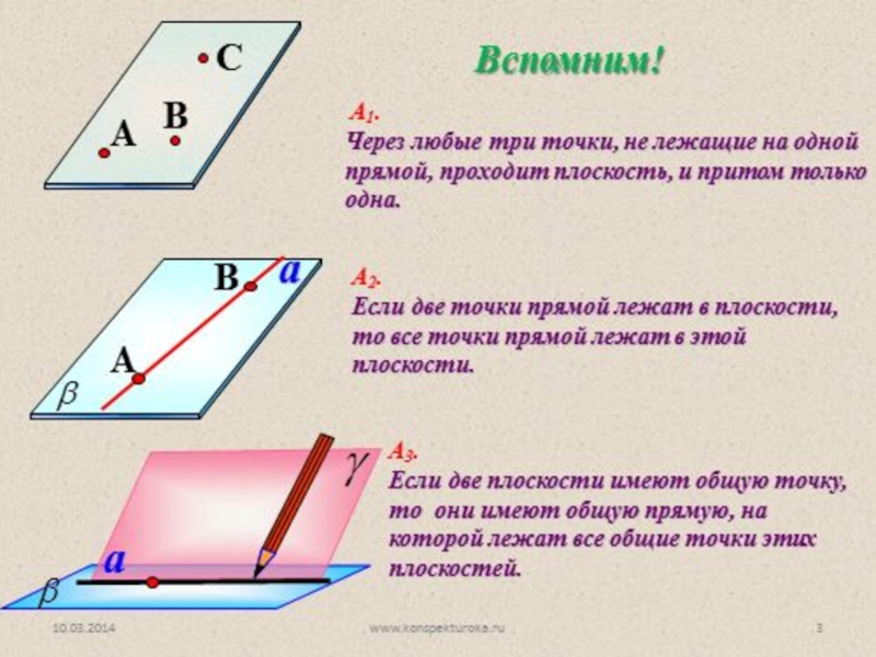 аксиом. Любая другая плоскость, которой принадлежит АВ,