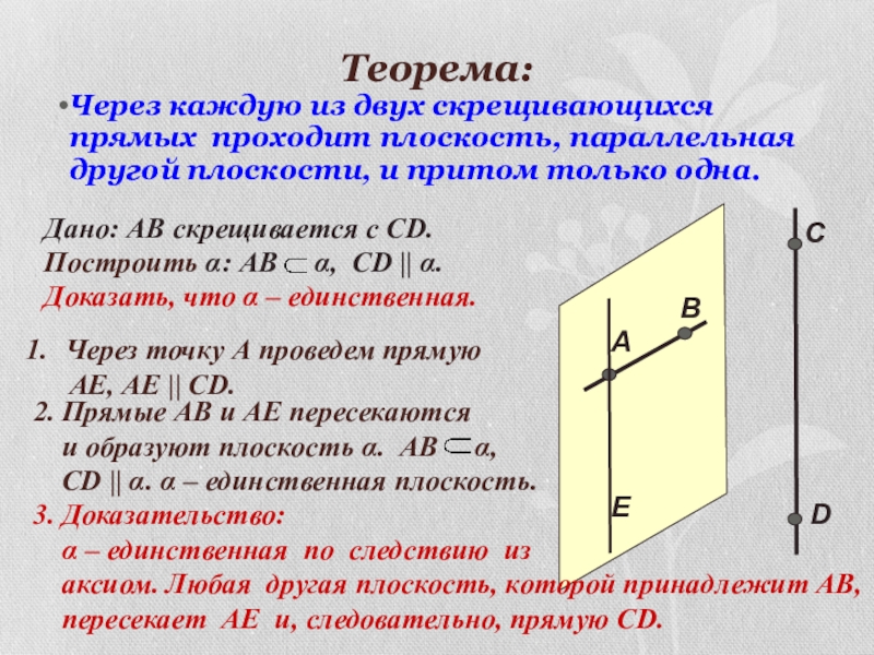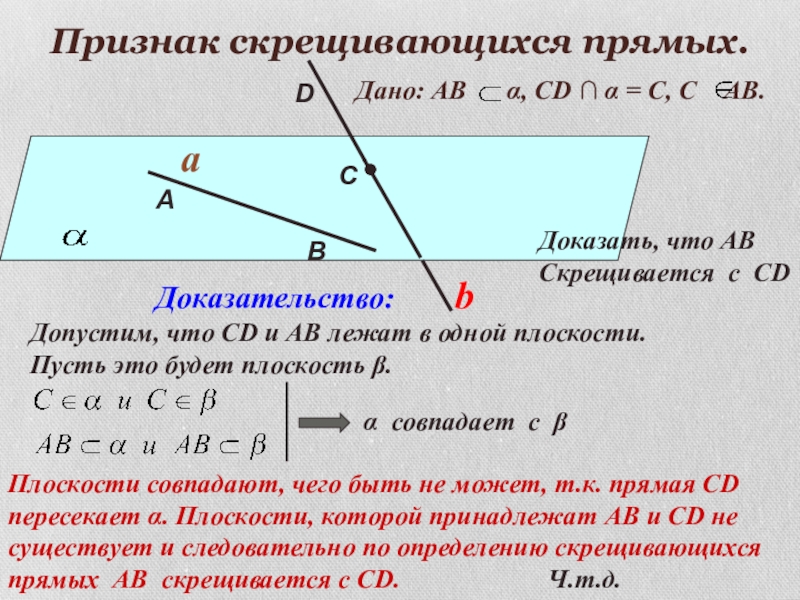 пересекает α. Плоскости, которой принадлежат АВ и СD не