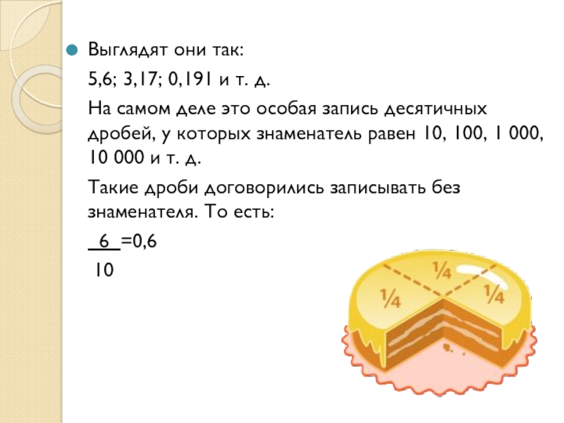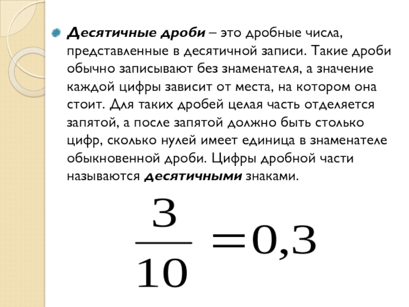 Слайд 3Десятичные дроби – это дробные числа, представленные в десятичной записи. Такие