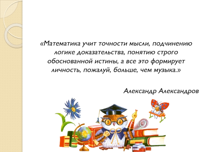 Слайд 14«Математика учит точности мысли, подчинению логике доказательства, понятию строго обоснованной истины,