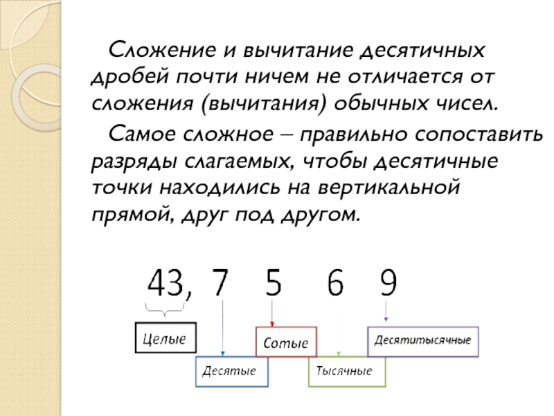 Слайд 9Сложение и вычитание десятичных дробей почти ничем не отличается от сложения