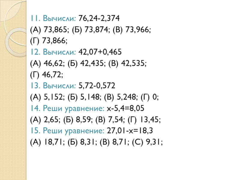 (А) 73,865; (Б) 73,874; (В) 73,966;