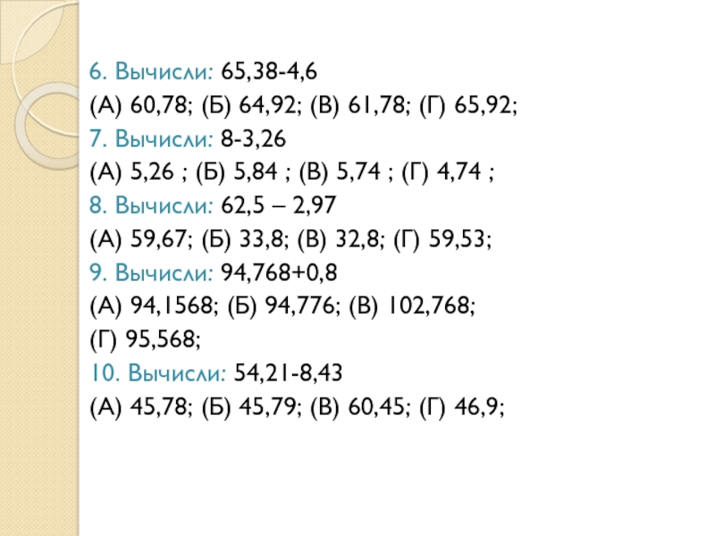 (А) 65,72; (Б) 64,38; (В) 65,28; (Г) 64,28;