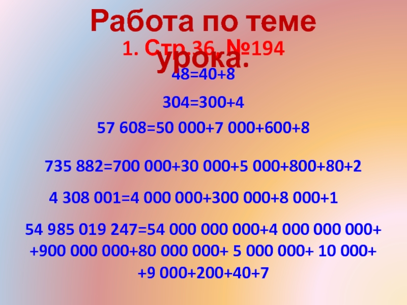 Работа по теме урока.