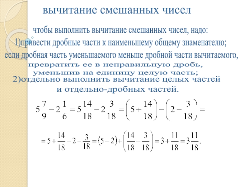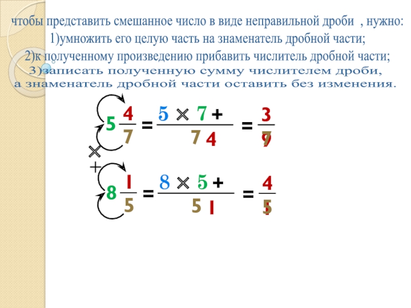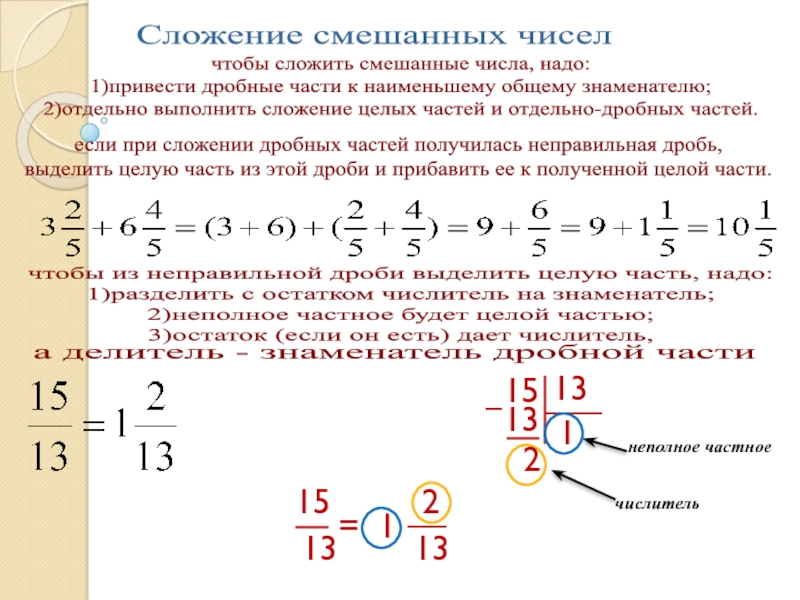 выделить целую часть из этой дроби и прибавить ее к полученной целой части.