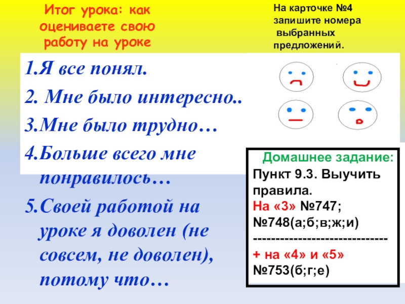Домашнее задание: Пункт 9.3. Выучить правила.
